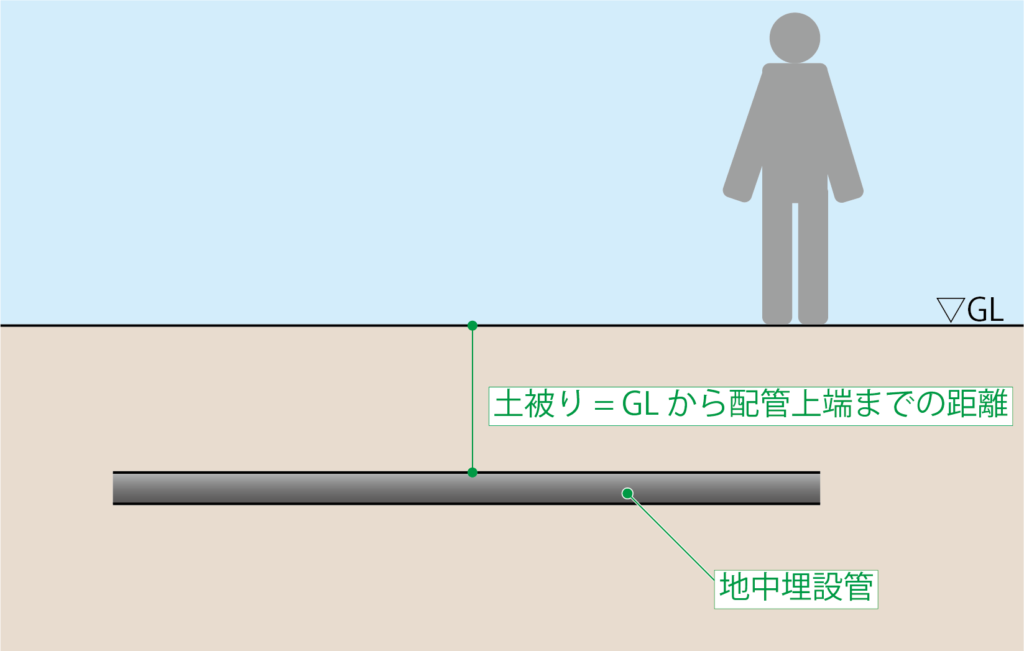 土被りとは地盤面から配管の上端までの距離だ。