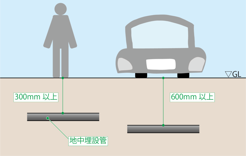 あまりにも浅い位置に配管が設置されると配管が人や車両の荷重に耐えられない。